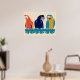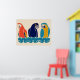 Add a tropical touch to your room with this poster featuring illustrations of three birds. There's a scarlet macaw, a hyacinth macaw and a blue and yellow macaw. The birds are in shades of red, golden yellow, navy blue and turquoise blue and set against a cream or beige colored background.