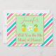 An amazing way to invite your Maid of Honour to be a part of your wedding party, this invitation features a lovely pink, green and blue diagonally striped background with a green box outlined in pink. The box has a template for customising her name with "Will you be my Maid of Honour?" written in pretty pink font. Personalise yours today!