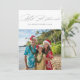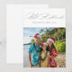 Bring the spirit of aloha to your holiday greetings with this joyful Mele Kalikimaka card. Featuring a sunny beach backdrop, vibrant tropical colours, and a cheerful family photo, this design captures the magic of a warm island Christmas. The elegant calligraphy adds a sophisticated touch to this playful, festive card. It's perfect for families who love sand, surf, and celebrating the season with sunshine and smiles.