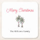 Tropical Merry Christmas Palm Trees Beach Square Paper Coaster