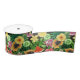 Tropical mix-fruit, flowers and leaves on black satin ribbon