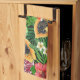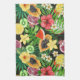 Tropical mix-fruit, flowers and leaves on black tea towel