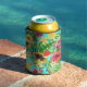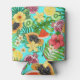 Tropical mix-fruit, flowers and leaves on blue can cooler