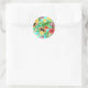 Tropical mix-fruit, flowers and leaves on blue classic round sticker