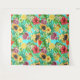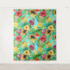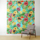 Tropical mix-fruit, flowers and leaves on blue tapestry