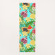 Tropical mix-fruit, flowers and leaves on blue yoga mat