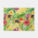 Tropical mix-fruit, flowers and leaves on yellow doormat