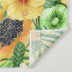 Tropical mix-fruit, flowers and leaves on yellow tapestry