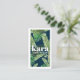 A watercolor illustration of green tropical leaves set on a dark navy blue background adds a chic aesthetic to this modern business card layout. The vertical orientation is fresh and unique. A bold font on the front showcases your brand name against the dark background. This double-sided card provides plenty of space on the backside for your name and contact details. Illustration and design © 1201AM Design Studio | www.1201am.com