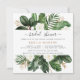 Tropical Modern Palm Cactus White Floral Bridal Invitation