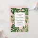 Tropical monstera and palm leaves pink wedding invitation