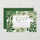 Tropical monstera and palm leaves wedding RSVP