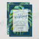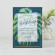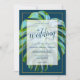 Tropical Monstera Leaf Dark Blue Gold Wedding Invitation