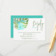 Hawaiian, blue and green monstera leaf is colourful on this reply card. RSVP insertion card is a beautiful addition to nautical, tropical wedding invitations. Versatile for turquoise and blue wedding colours.