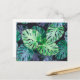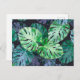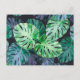 Colourful watercolor tropical tracery monstera leaves on a dark blue background.