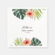 Classical bridal shower napkin adorned with watercolor tropical motifs: monstera leaf, palm leaf and hibiscus flower. Customize the napkins with your details for your shower day. It is simple and the result is immediately visible on the the screen.