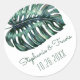 Tropical Monstera Palm Leaf Wedding Date Classic Round Sticker