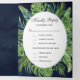 Tropical Monstera Palm Leaves Navy Blue Wedding Tri-Fold Invitation