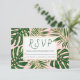 Tropical monstera, palm leaves pink wedding RSVP Card