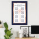 Add your own special touch to this elegant design featuring modern script and navy blue text including an artistic rose gold palm tree silhouette with a metallic rose gold copper frame on the front. This seating chart design features the bride and groom's names along with the words "Eat, Drink, and Be Merry" and "Please Find Your Seat". Templates are provided for up to eight tables with up to 8 or 9 names per table.
