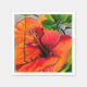 From an original watercolor painting of a vibrant colourful tropical hibiscus flower. This floral painting design is bright and orange with a tropical flora and foliage theme.