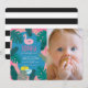 This cute girl's 1st/first birthday photo invitation features a pink flamingo tube/float, tubes floating on a pool surrounded by tropical leaves on a neon pink background. The reverse side features a white background with black stripes. Personalise it for your needs. Perfect for birthday parties, block parties, cocktail parties, summer parties, graduation parties, and housewarming parties. You can find more matching products at my store.