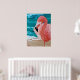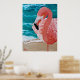 Reproduction of an original hand painted acrylic canvas painting.  Bright colours bring tropics into your home.  Abstract ocean/beach background with the flamingo hand drawn and painted over it.   This is beautiful.