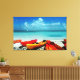 Brightly coloured kayaks await paddlers at mid-day on a quiet, secluded beach in the Bahamas.