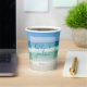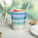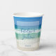 This beautiful beach wedding paper cup features a gorgeous photo of the ocean waves for a destination wedding. Pretty beach photography paired with elegant white and blue typography creates a chic, modern look for a tropical island event. Lovely personalised seaside decor.