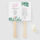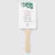 This botanical watercolor ceremony hand fan features a bottom and top boarder of my original handdrawn tropical bird of paradise flower and monstera palm leaves in shades of orange, green and turquoise blue on a crisp white background. The bride and grooms names and island wedding program timeline are set in hand lettered script and serif typography. This double sided botanical floral and greenery design is a beach wedding style choice for Caribbean, luau, Hawaiian, Summer, destination and Florida weddings. Designed by Victoria of Do Tell a Belle. To see more, visit www.zazzle.com/dotellabelle