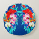 Tropical orchid palm leaves Hawaiian floral blue Round Cushion