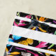 A Beach Towel Of A Beautiful Pattern Of Tropical Orchid Flowers And Butterflies With White Stripes