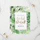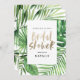Modern tropical palm leaf watercolor foliage bridal shower invite. Hand painted gold effect script text. Part of a on trend summer collection. Background colour can be changed.