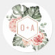 Tropical Palm and Roses Wedding Monogram Classic Round Sticker