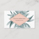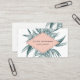 Unique tropical design features your name and title or business name displayed on a summery peach geometric element, layered over jasper green tropical palm frond leaves. Add your full contact details to the reverse side, adorned with a smaller palm frond, along with a customisable QR code.