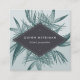 Unique square tropical design features your name and title or business name displayed on a brushed charcoal geometric element, layered over jasper green tropical palm frond leaves on a tone on tone mint green colorblock background. Add your full contact details to the reverse side, adorned with a smaller palm fronds at two corners.