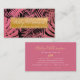 Present your best self to your clients, with Hawaiian tropical flair, whenever you use these chic, striking, stylish, modern, custom name business cards. Crisp, white handwritten script typography in a faux gold foil rectangle overlays a graphic, elegant, tropical palm leaf pattern of dusty rose pink gradations on black. Personalise with your full name and business on the front. Fill in the dusty rose pink back side with your phone numbers, address, email, website, and social media accounts. Makes a chic, professional, and stylish statement wherever you go.