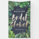 Modern tropical palm leaf watercolor foliage bridal shower invitations. Hand painted gold effect script text. Part of a on trend summer collection. Background colour can be changed.