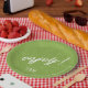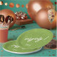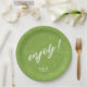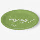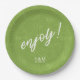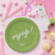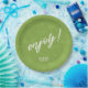 Colourful, paper plate design featuring a seamless pattern of palm leaves in shades of spring green with bold, white 'Enjoy text. Add your initials and wedding date using the provided template. This tropical design is perfect for summer, beach and tropical weddings, birthdays and other special events. Search ID577 to see matching products.