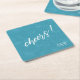 Colourful, paper coaster design featuring a seamless pattern of palm leaves in shades of teal with bold, white 'Cheers' text. Add your initials and wedding date using the provided template. This tropical design is perfect for summer, beach and tropical weddings, birthdays and other special events. Search ID577 to see matching products.