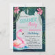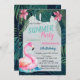 Tropical Palm Leaf,Pink Flamingos Birthday Invitation