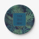 Bring bold tropical vibes to your next event with this modern paper plate design featuring dark palm and fig leaves. The rich color palette—navy, blue, teal, purple, sage, and green—adds a stylish jungle feel to any party table.