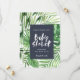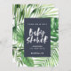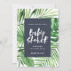 Modern tropical palm leaf watercolor foliage baby shower invitations. Hand painted effect script text. Part of a on trend summer collection. Background colour can be changed.