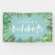 Modern tropical palm leaf watercolor foliage bachelorette party banner. Hand painted effect script text. Part of a on trend summer collection. Background colour can be changed.