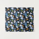 Cool beer bar and man cave wall tapestry printed with beer bottles over blue and white tropical plam leaves on black