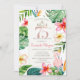 Tropical Palm Leaves Flowers Pink Flamingo 75th Invitation