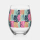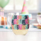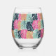 Tropical Palm Leaves in Pink & Blue | Stemless Stemless Wine Glass