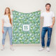 Monogram personalised fleece blanket featuring a botanical green exotic tropical palm tree leaves pttern and personalised monogram in the centre.