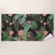 Tropical Palm Leaves Pink Floral Black Beach Towel