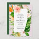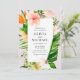 modern green watercolor wedding theme with palm leaves and pink floral. The text and colours can be edited.
